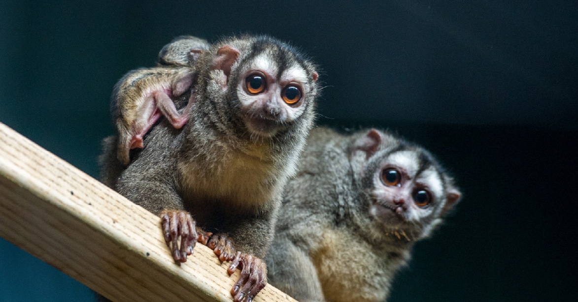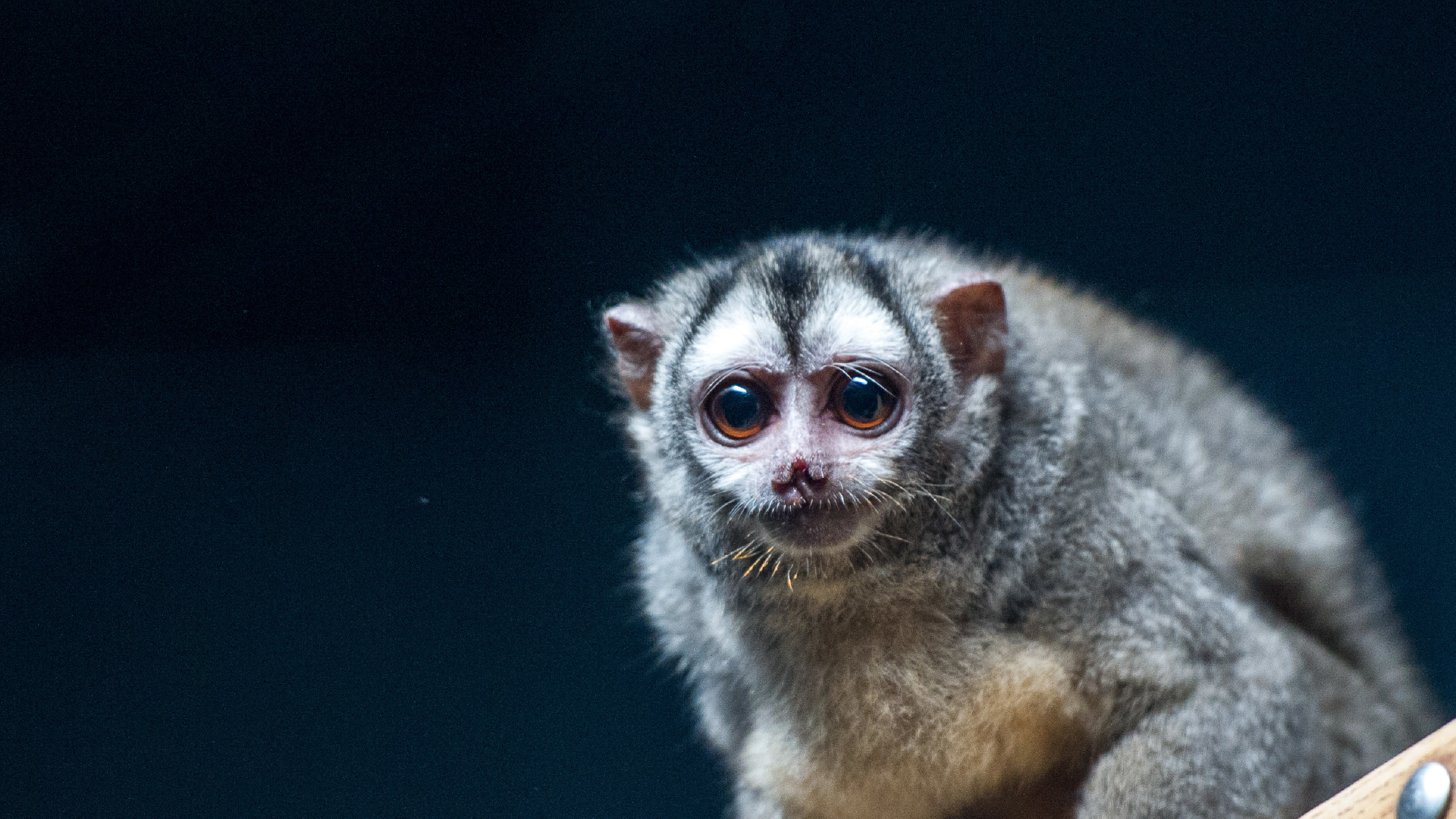 De grijspootdoeroecoeli’s leven in Apenheul in het nachtdierenverblijf bovenop het Apenboompad. Daar hebben we het dag- en nachtritme omgekeerd: overdag is het er donker en ’s nachts licht. Zo kan jij de dieren zien als ze wakker zijn!