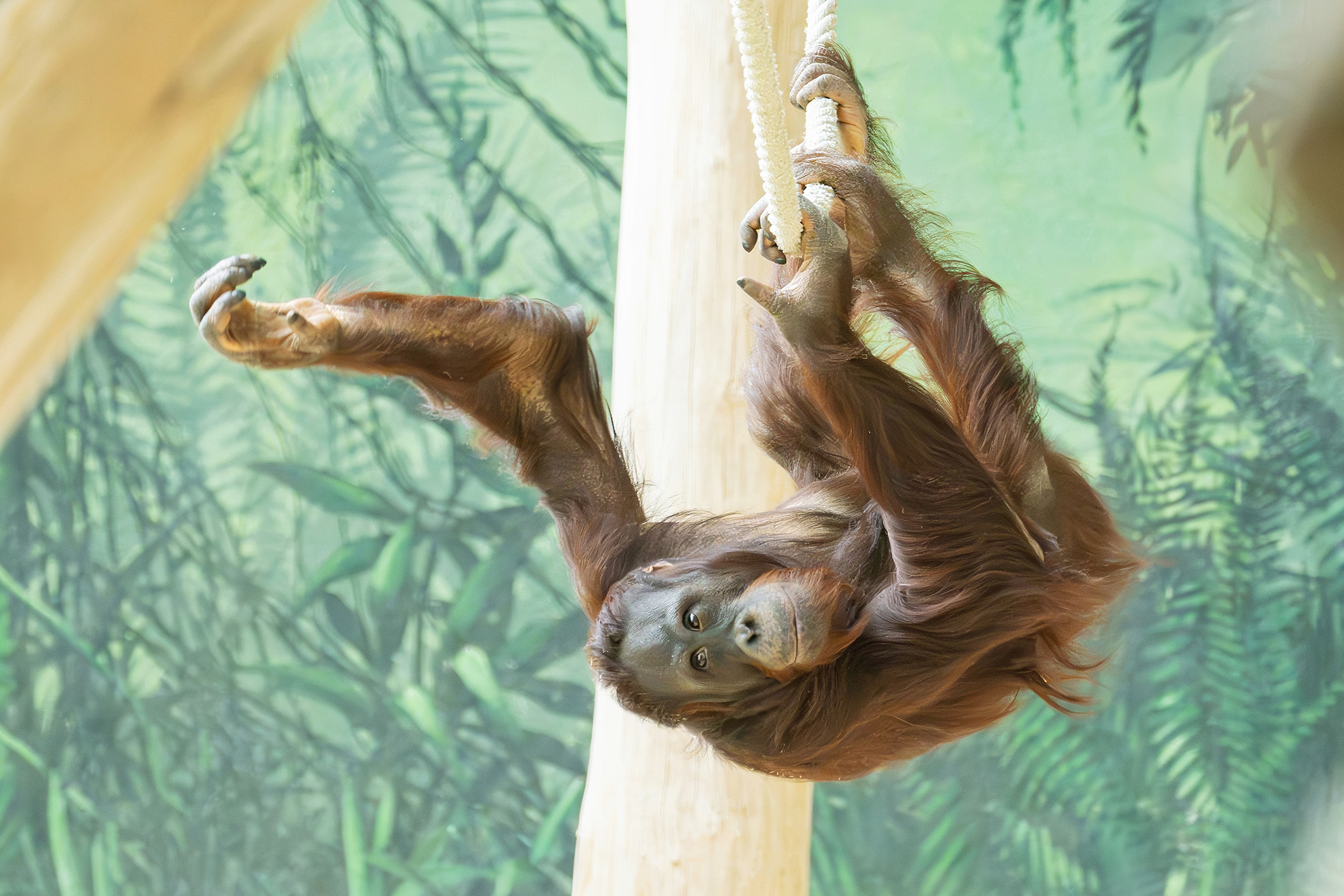 Na aankomst mag Baju eerst zelf het nieuwe verblijf ontdekken. In de dagen erna maakt hij kennis met zijn nieuwe soortgenoten. Onze dierverzorgers, met hun vele jaren ervaring met orang-oetans en Baju, helpen hierbij. De kennismaking verloopt heel rustig en goed. We hopen dat Baju zich zal voortplanten; een belangrijke stap voor het behoud van deze ernstig bedreigde diersoort. Foto: Daniel Zupanc