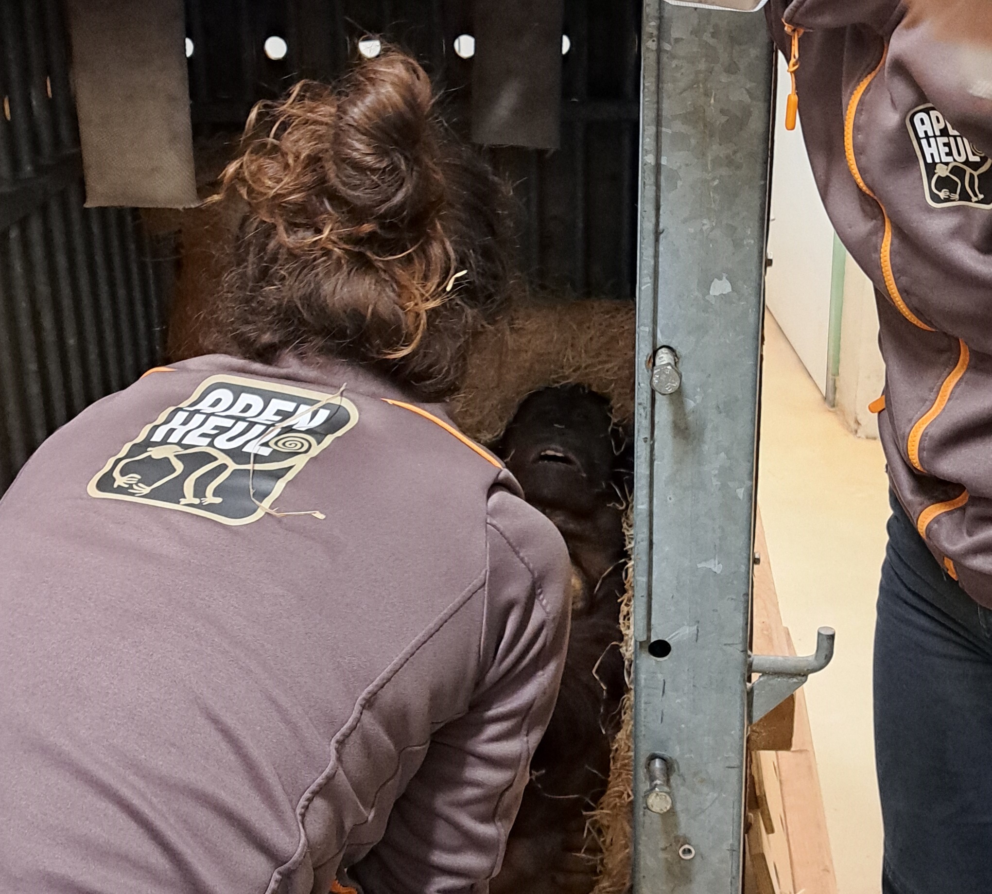 Twee dierverzorgers van Apenheul reizen mee. Vooral zodat Baju bij aankomst vertrouwde gezichten ziet wanneer alles nieuw is. Daarnaast kunnen onze dierverzorgers ook helpen bij de kennismaking met de andere orang-oetans in Zoo Vienna. Deur dicht en op naar Oostenrijk!