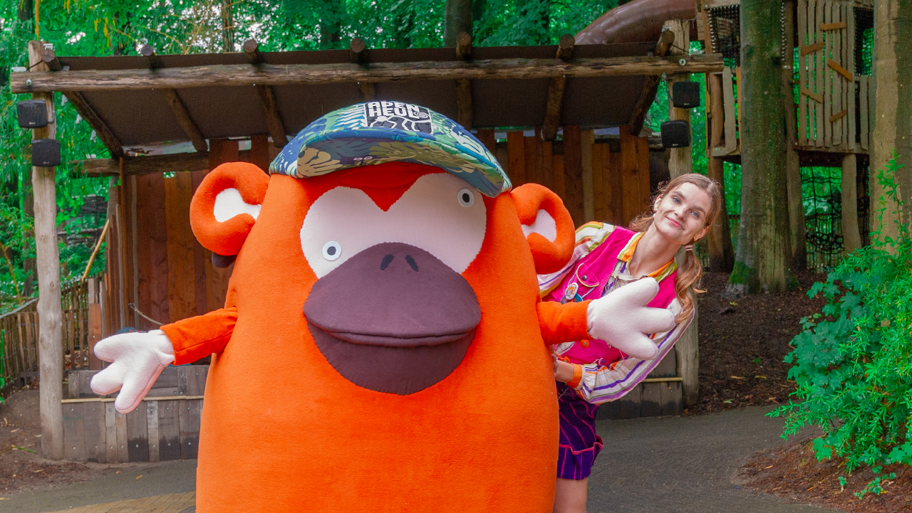 Zie het gekke wezen NAAAP nu in het echt! Hij houdt zóveel van na-apen; doe jij met NAAAP mee tijdens de grote NAAAP show? Deze zomervakantie (19 juli t/m 17 augustus) elke dag om 14.30, 15.30 en 16.30 uur. Op zondagmiddag 24 & 31 augustus is er geen show, maar kun je wel op de foto met NAAAP. Je spot hem in de buurt van restaurant De Apegaap.